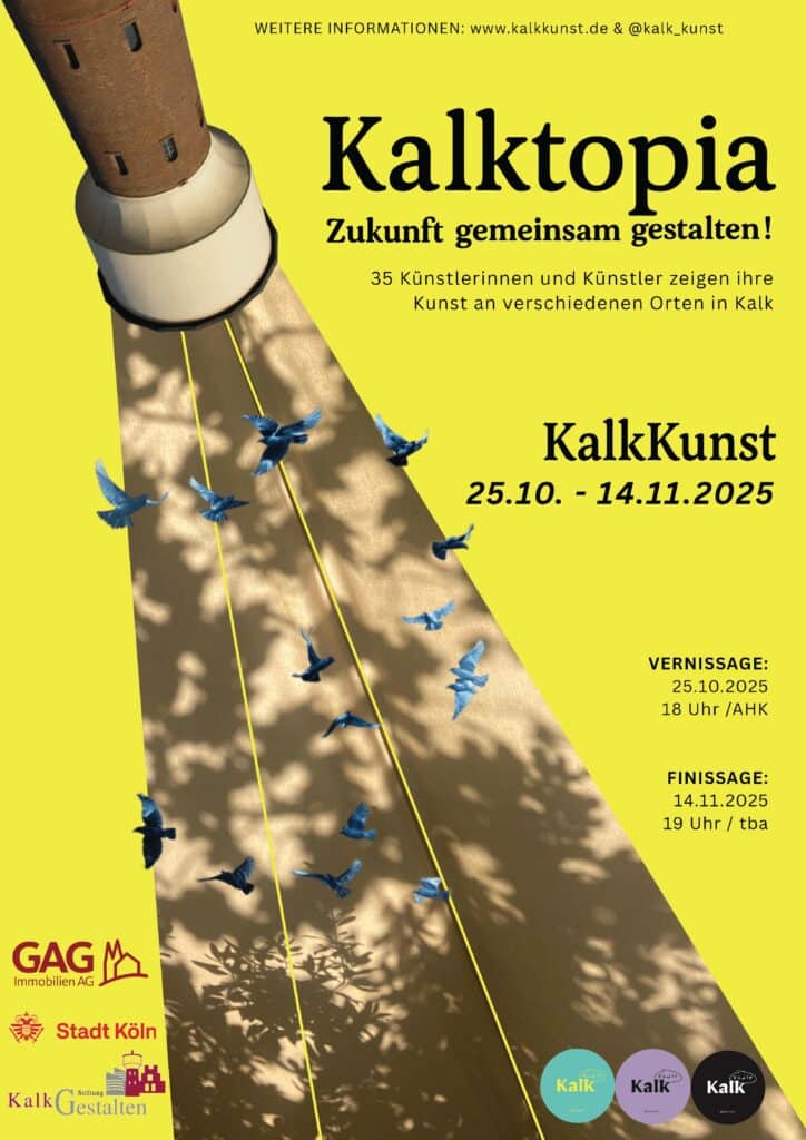 Zur diesjährigen KalkKunst und zur Eröffnung am 25.10.2025 in den Abenteuerhallen Kalk, in der Christian-Sünner-Str., sind alle herzlich eingeladen. Wir haben in diesem Jahr über 40 Künstlerinnen und Künstler, die an über 20 Orten in unserem Stadtteil ausgestellt werden. Kommen Sie zur Eröffnungsvernissage am 25.11.2025, 18:00 Uhr in die Abenteuerhallen Kalk. Wir haben dazu die Bezirksbürgermeisterin Claudia Greven-Thürmer eingeladen und wir werden an diesem Abend Kunstwerke von allen teilnehmenden Künstlern zeigen, sozusagen als Appetithappen für die gesamte KalkKunst in diesem Jahr.